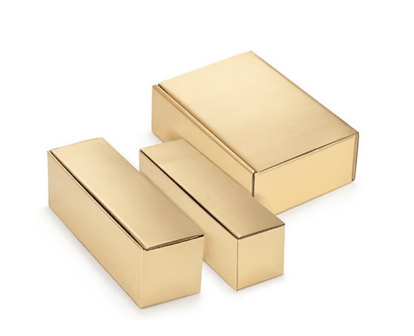 Strong, double wall cardboard boxes, gold metallic, 20x10x36,6 cm